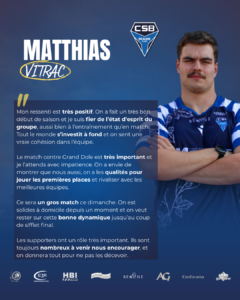 Dimitri Tomaso et Matthias Vitrac nous donnent leurs ressentis sur la douzième journée de championnat de Fédérale 3 ! – Dimanche 25 Janvier – Stade Jean Guiral, Beaune – Coup d’envoi réserve : 13H30 – Coup d’envoi première : 15H15 Bleu Blanc Beaune