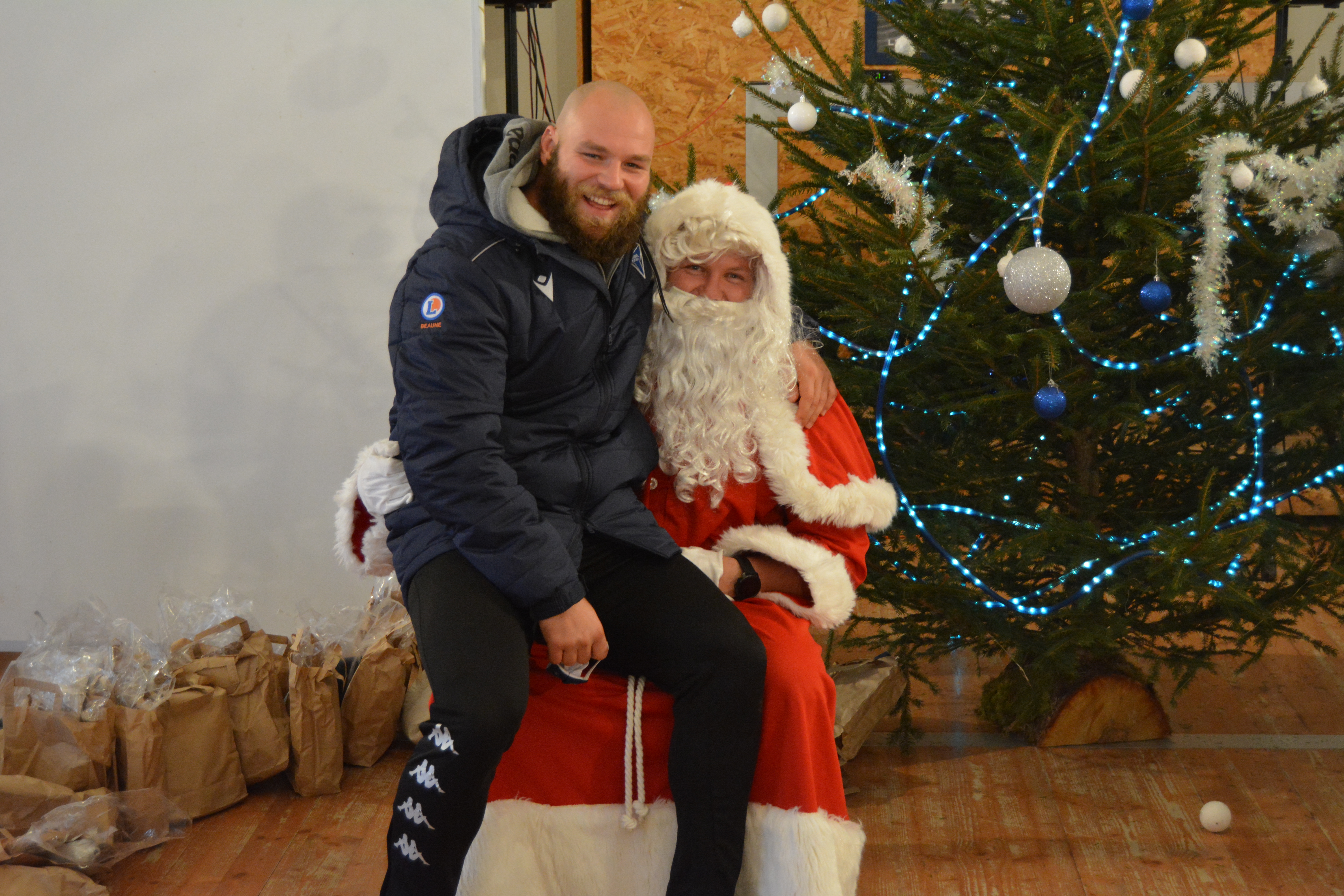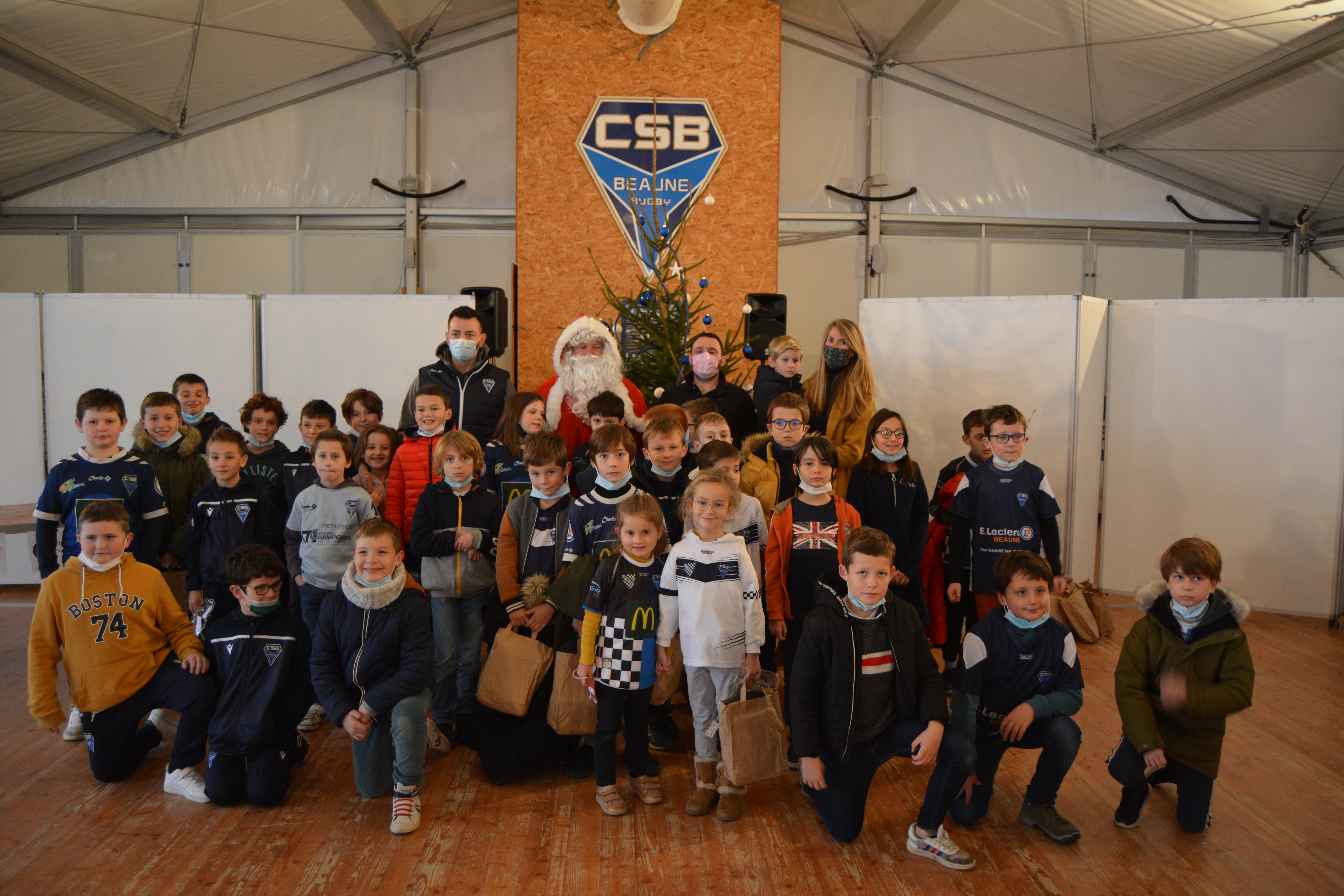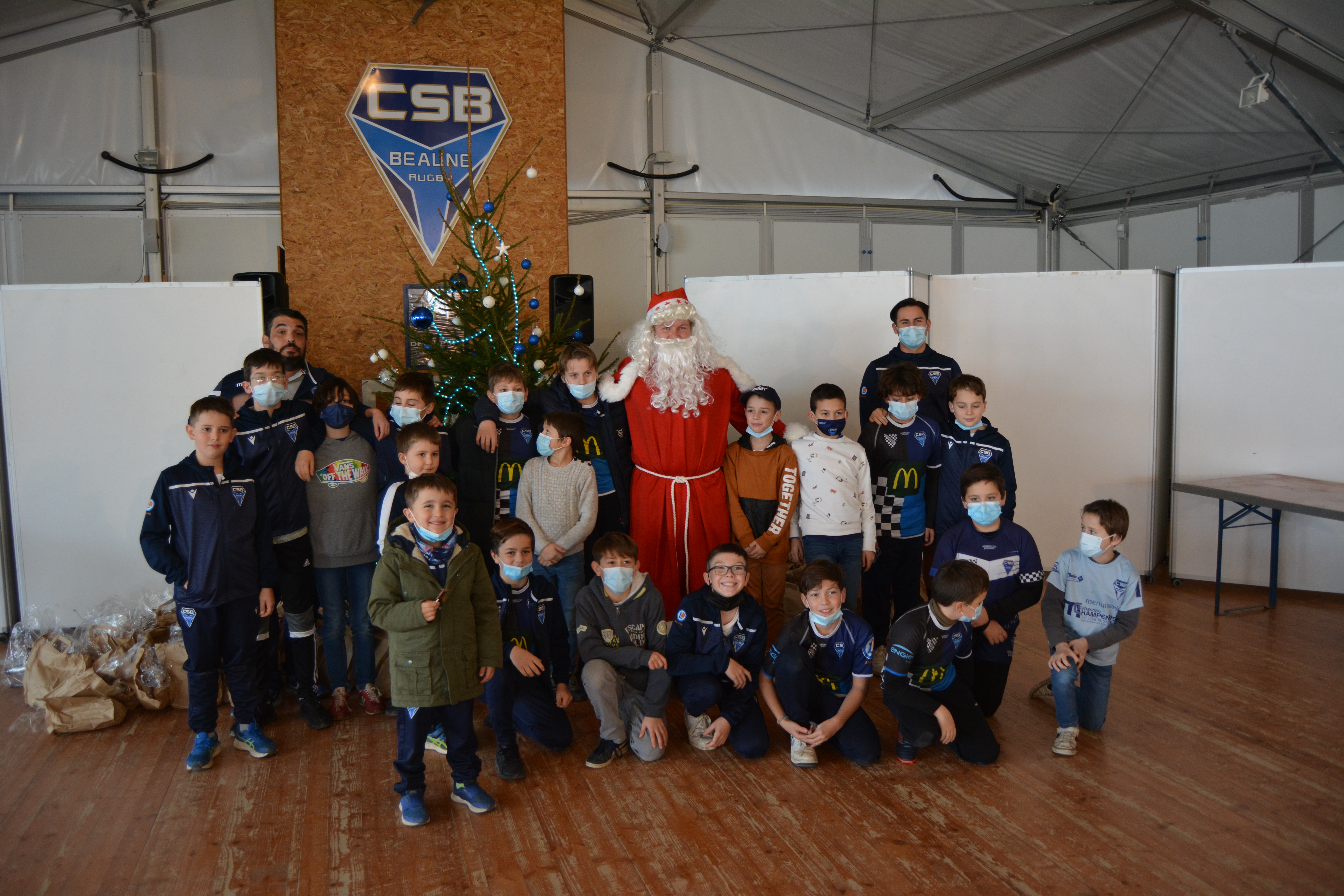 Mercredi après-midi avait lieu le repas de noël de l’École de rugby ! Le père Noël lui-même était présent pour remettre des cadeaux aux enfants, avant la traditionnel photo !