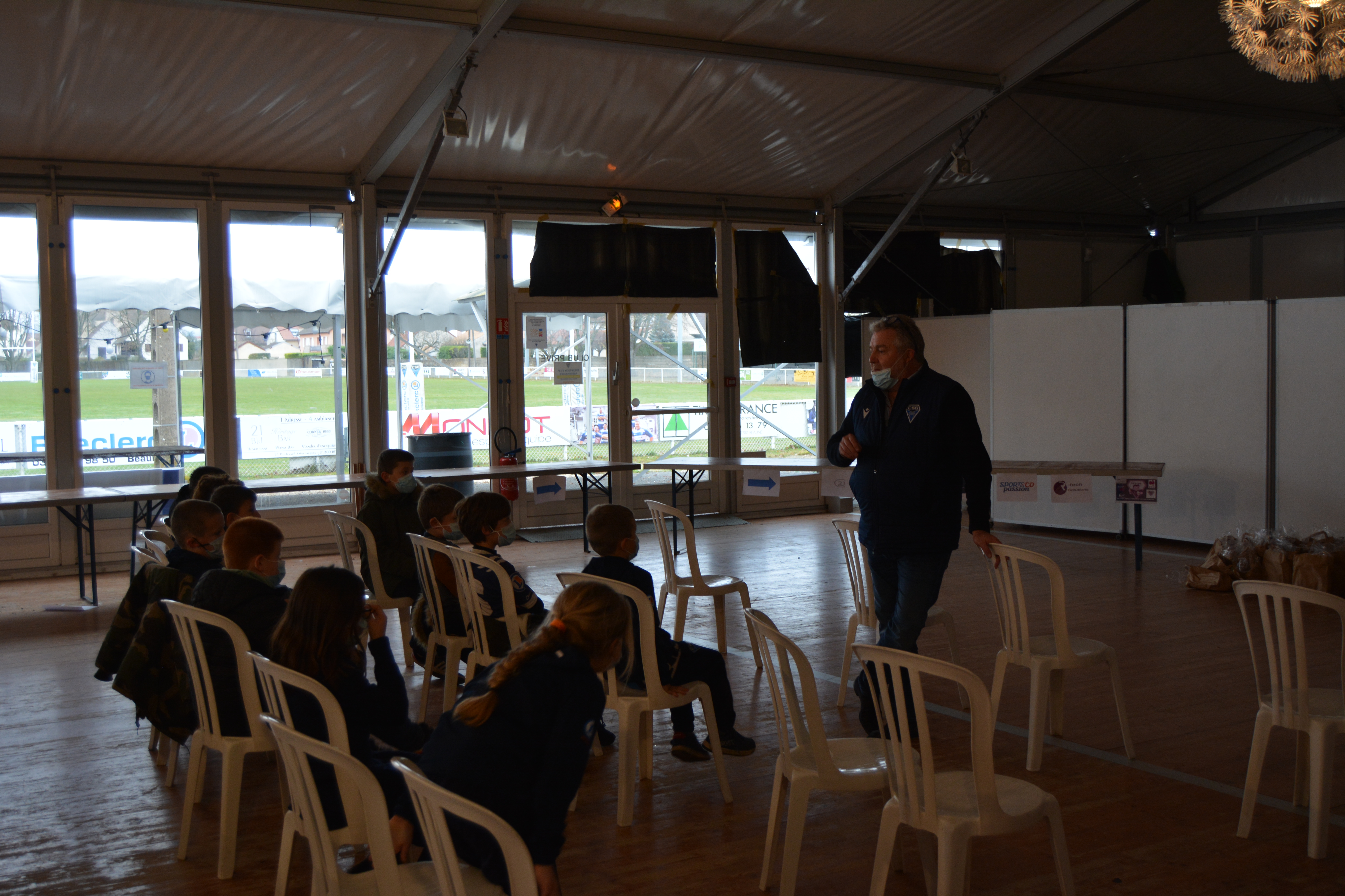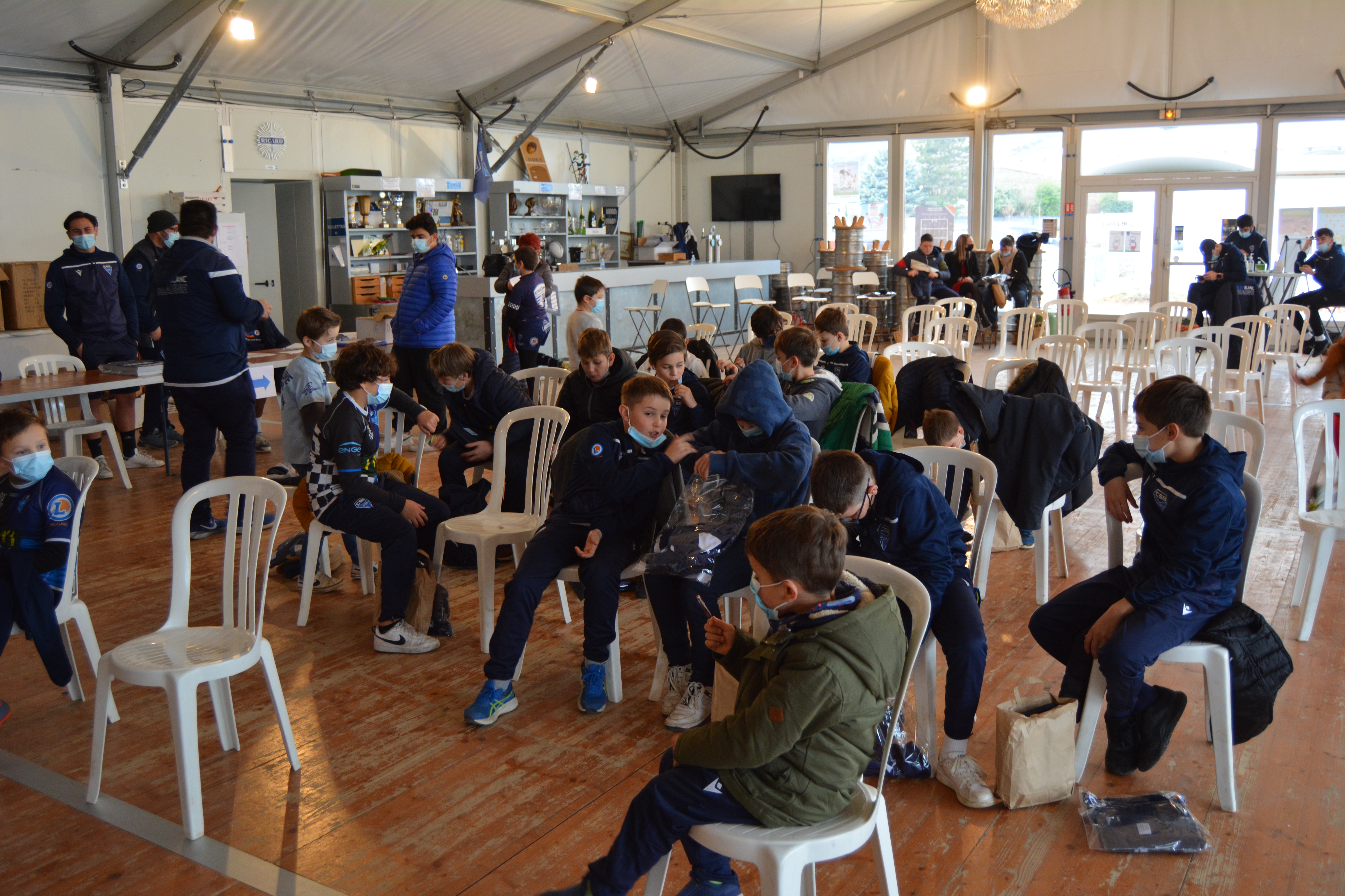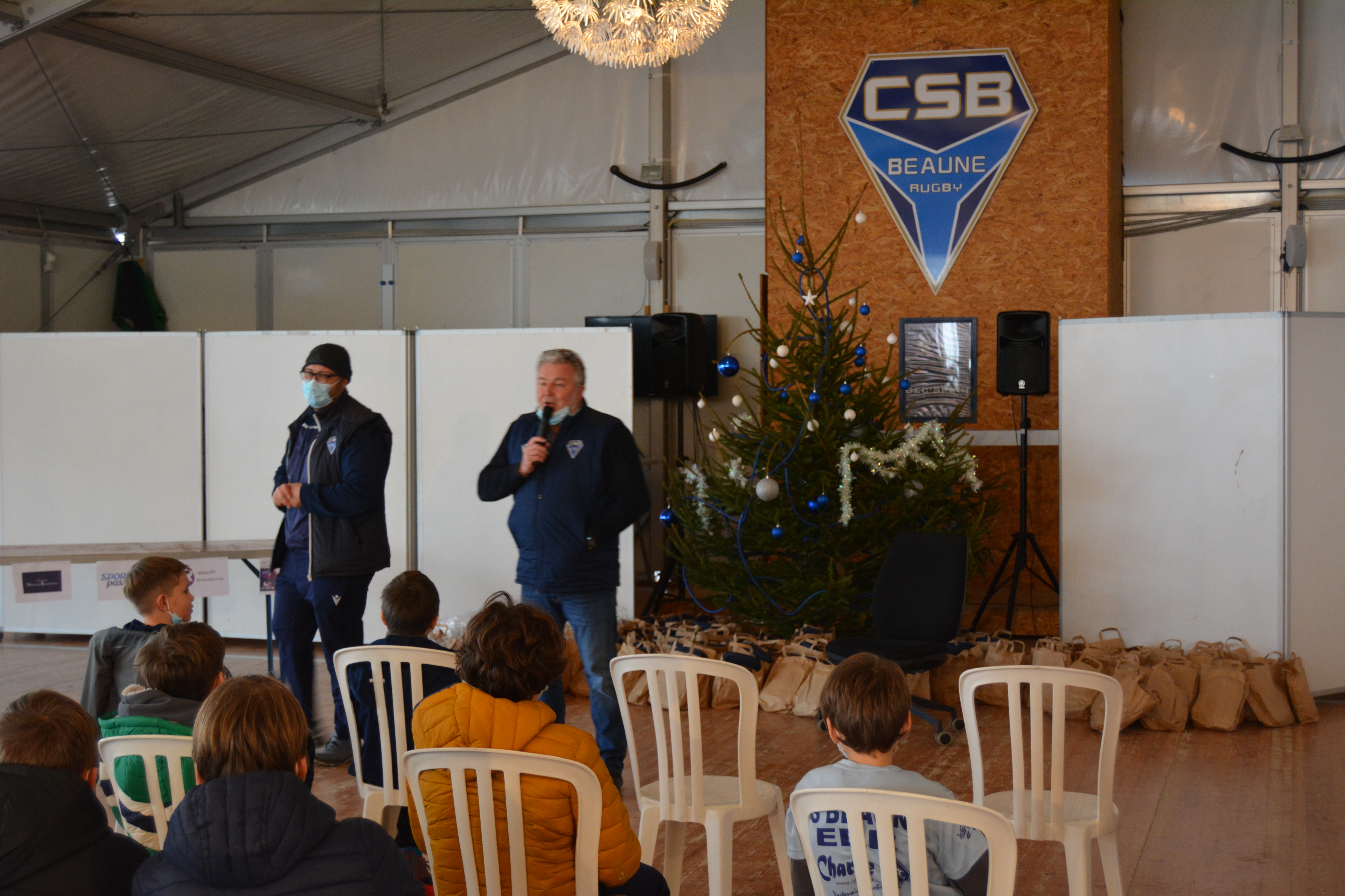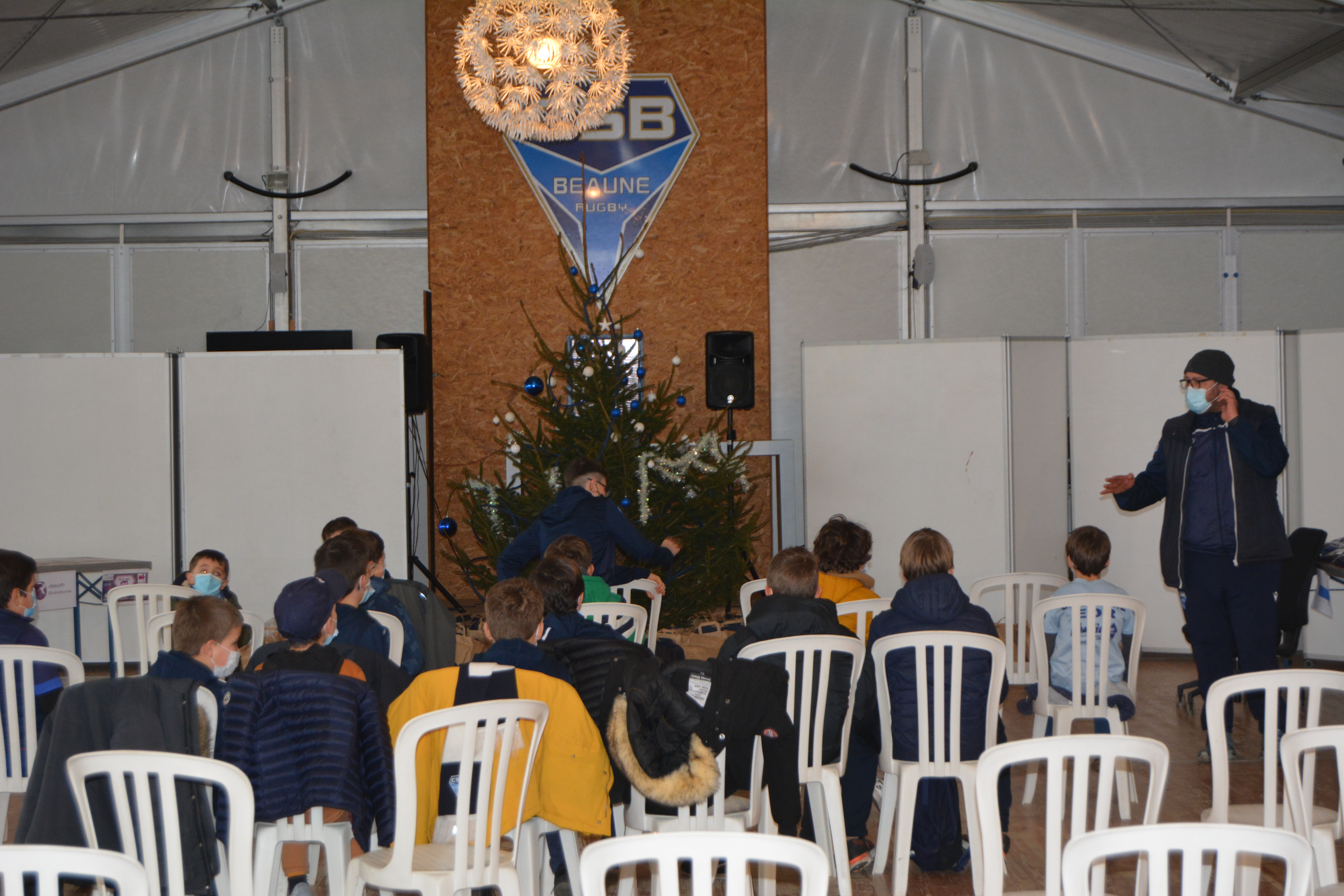 Mercredi après-midi avait lieu le repas de noël de l’École de rugby ! Le père Noël lui-même était présent pour remettre des cadeaux aux enfants, avant la traditionnel photo !