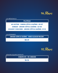 Résultats du week-end : 14/15 Mars