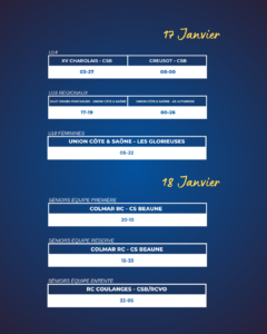 Résultats du week-end : 17/18 Janvier